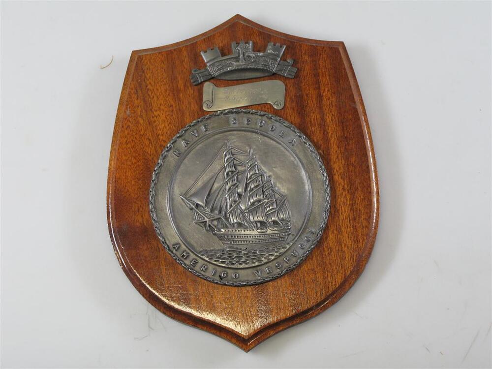 - Plaquette Nave Scula, Amerigo Vespucci, met voorstelling van kroon en schip, 1978