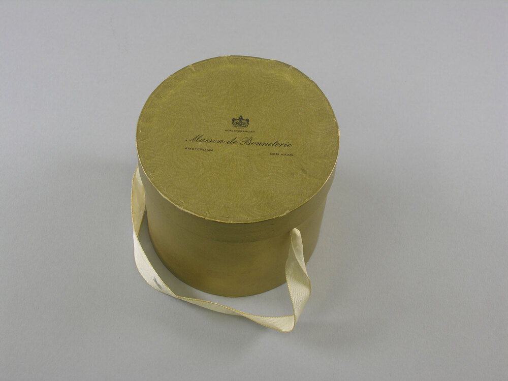- merk bovenzijde deksel van doos: HOFLEVERANCIER/ Maison de Bonneterie/ AMSTERDAM DEN HAAG