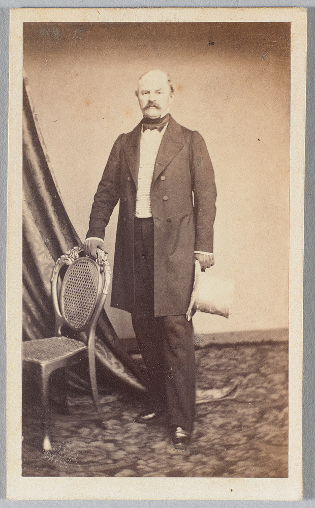- Onbekende staande man met witte hoge hoed, 1870 - 1890