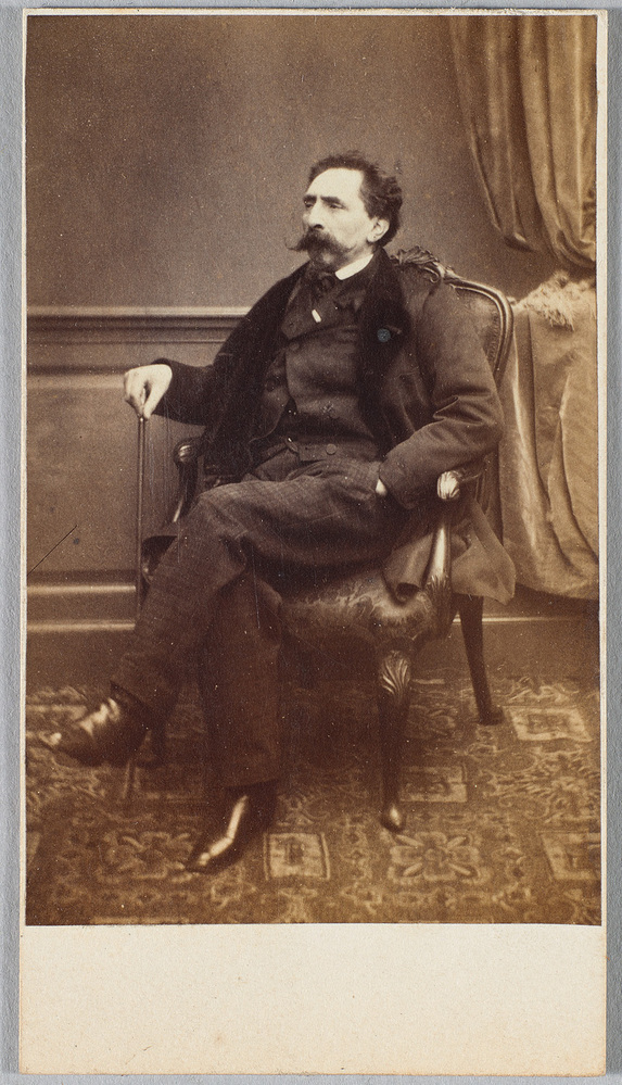 Salomon Leonardus ‘Sam’ Verveer (1813-1876) en zijn broer Maurits (1817-1903) waren van joods-Haagse komaf. Op deze foto poseert Sam ontspannen in de het atelier van zijn broer. Niets verwijst naar zijn status als beroemd schilder. Sam Verveer schilderde vooral landschappen en stadsgezichten. Hij was een veelzijdig kunstenaar die even verdienstelijk in verschillende