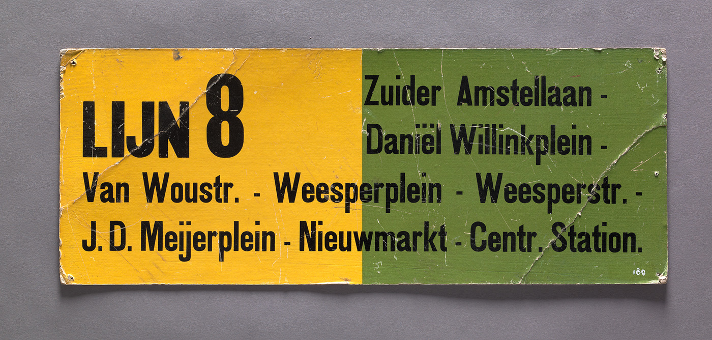 Eind 2010 heeft het Amsterdam Museum dit historische trambordje in de collectie opgenomen. Het bordje hing in tram 8, in de volksmond de ‘jodentram’ geheten, omdat die door alle Amsterdamse buurten reed waar Joden woonden. In 1942 werd de lijn opgeheven. Dit kwam niet alleen door personeelschaarste, maar het was ook een direct gevolg van het verbod door de Duitse bezetters voor Amsterdamse Joden om van het openbaar vervoer gebruik te maken. Door dit besluit verloor lijn 8 het grootste deel van haar reizigers. Na het afschaffen werd het spoor gebruikt om Joden op transport naar de concentratiekampen te zetten. Om die reden heeft Amsterdam tot op de dag van vandaag geen tram 8 meer gekend. Dat de geschiedenis van tram 8 nog niet is vergeten, bleek wel in 1997 toen de gemeente Amsterdam een nieuwe tramlijn wilde benoemen. In eerste instantie werd gekozen voor het nummer 8, maar dat stuitte op fel protest. De lijn kreeg uiteindelijk nummer 20, maar ook die verdween alweer snel. De geschiedenis van de lijn bleek nog steeds te beladen. ( Maarten Jansen)