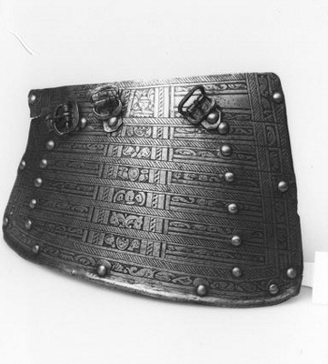 In de jaren zeventig van de zestiende eeuw bestelde de Amsterdamse schutterij vele harnassen in Noord-Italië. Dit exemplaar is waarschijnlijk vervaardigd in Brescia. Het is een zogenaamd pronkharnas, bestaande uit tien verschillende onderdelen om alle delen van het lichaam te beschermen. De harnassen werden gedragen door de infanterie van de schutterij: militairen te voet. Zij moesten de stadsmuren en –poorten beschermen en orde handhaven in Amsterdam. Tijdens de jaarlijkse kermis in september toonden de schutters zich in volle, glanzende wapenrusting aan de stad. Naarmate de kracht van vuurwapens sterker werd, werd het harnas geleidelijk aan meer een statussymbool dan bescherming. ( Sarah Remmerts de Vries)