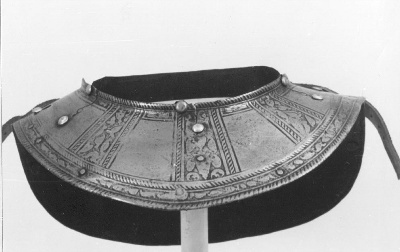 In de jaren zeventig van de zestiende eeuw bestelde de Amsterdamse schutterij vele harnassen in Noord-Italië. Dit exemplaar is waarschijnlijk vervaardigd in Brescia. Het is een zogenaamd pronkharnas, bestaande uit tien verschillende onderdelen om alle delen van het lichaam te beschermen. De harnassen werden gedragen door de infanterie van de schutterij: militairen te voet. Zij moesten de stadsmuren en –poorten beschermen en orde handhaven in Amsterdam. Tijdens de jaarlijkse kermis in september toonden de schutters zich in volle, glanzende wapenrusting aan de stad. Naarmate de kracht van vuurwapens sterker werd, werd het harnas geleidelijk aan meer een statussymbool dan bescherming. ( Sarah Remmerts de Vries)