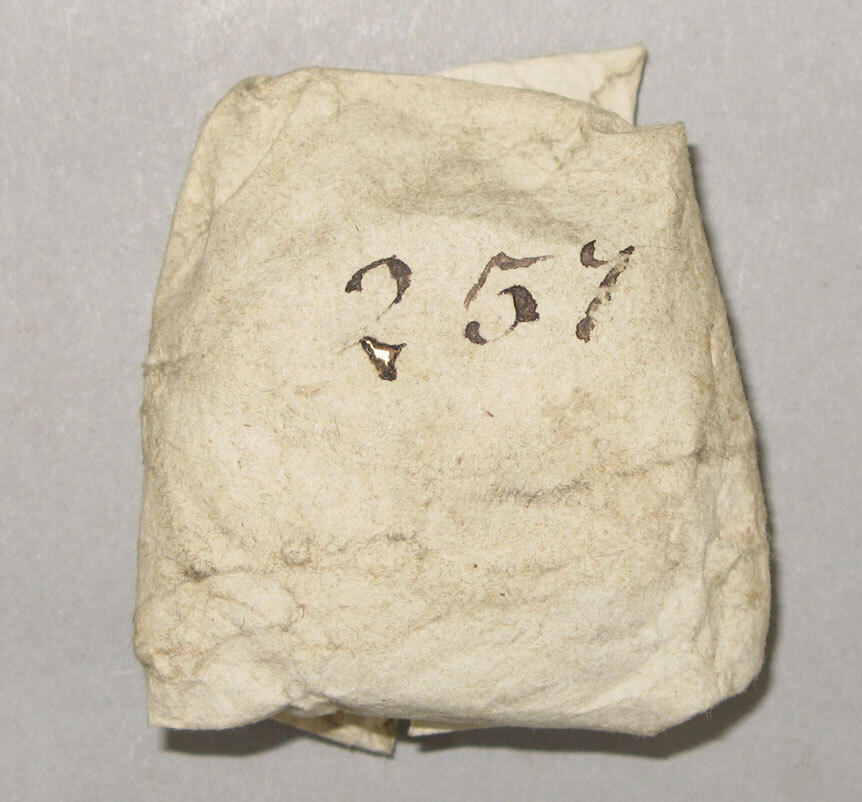Papieren wikkel. Genummerd in zwart: 257.- Trefwoorden