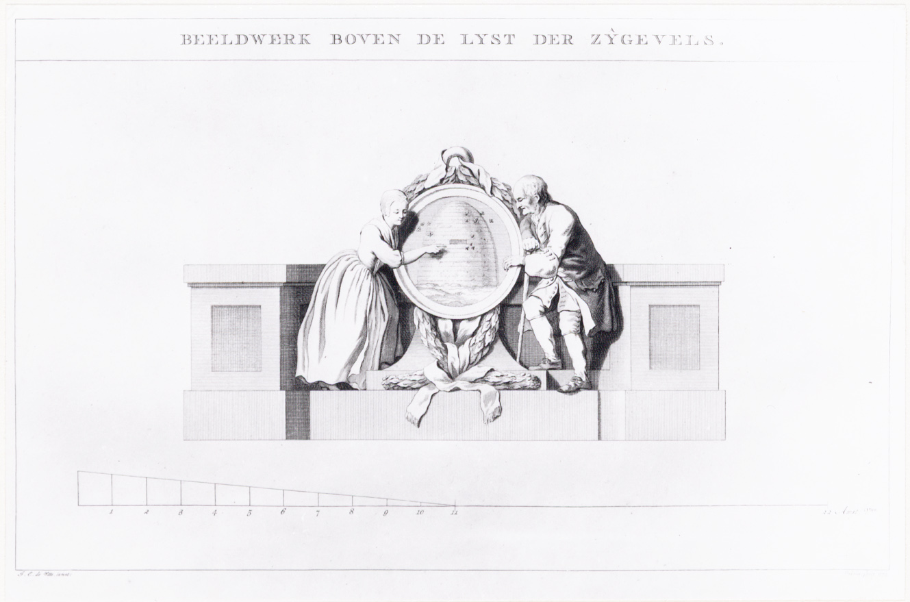 - Fragment van beeldhouwwerk fronton houten schouwburg Leidseplein, fragment kroon, 1773 - 1774