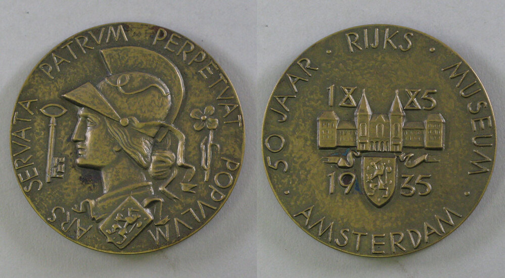 keerzijde: in een omschrift het Rijksmuseum waarboven een jaartal en onder een jaartal met het wapenschild van Nederland met een lint.