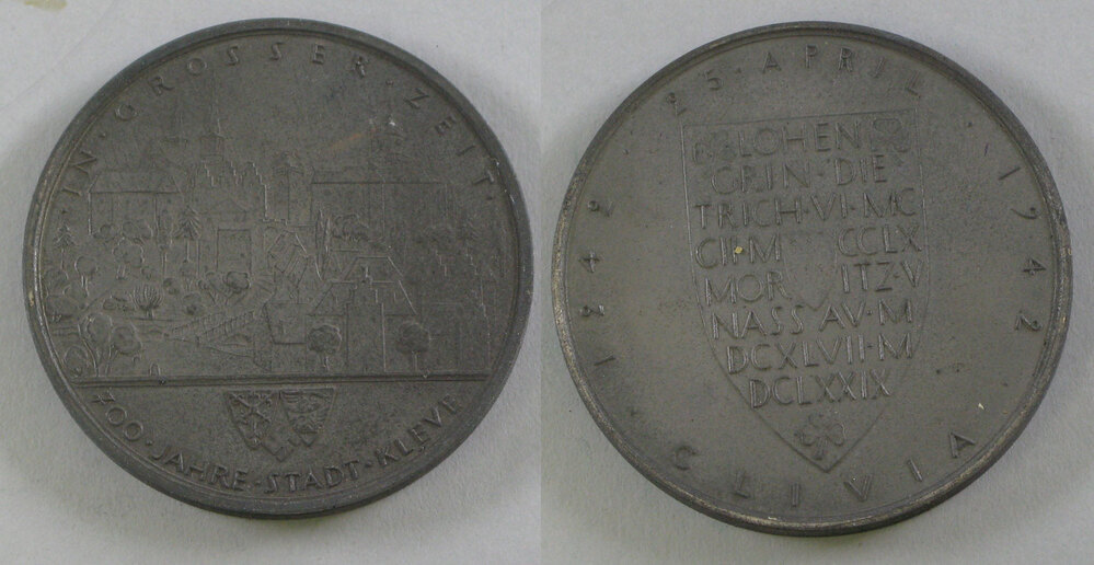 omschrift voorzijde: IN . GROSSER . ZEIT / 700 . JAHRE . STADT . KLEVE