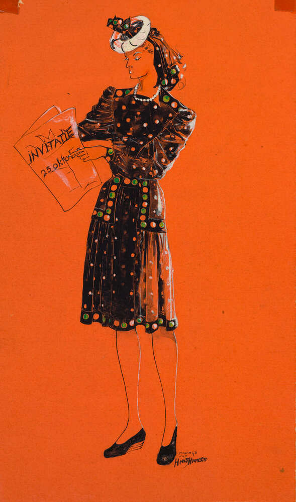 Modetekening gemaakt aan Industrieschool voor vrouwelijke Jeugd De Schans