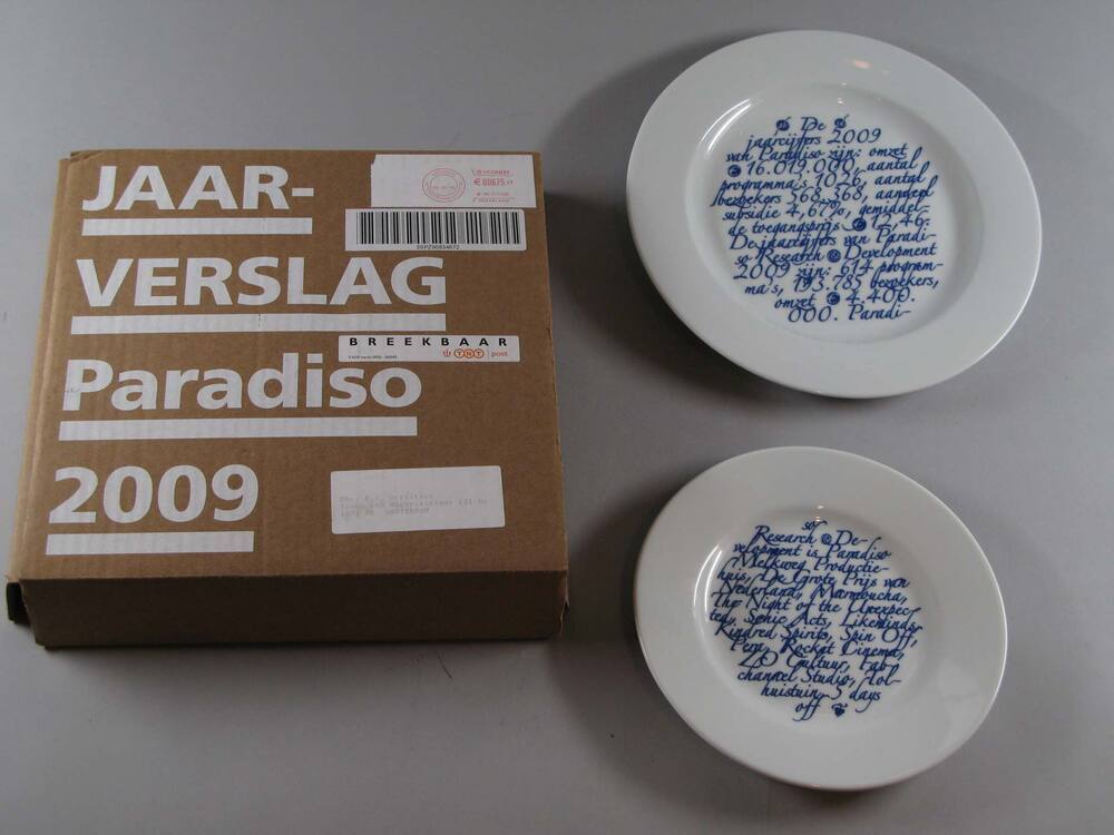 Twee borden met tekst, in kartonnen doos met tekst. Zie afzonderlijke subnummers.- Trefwoorden