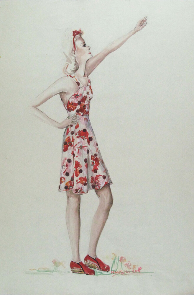 Modetekening gemaakt aan Industrieschool voor vrouwelijke Jeugd De Schans- Trefwoorden