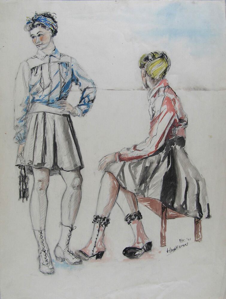 Modetekening gemaakt aan Industrieschool voor vrouwelijke Jeugd De Schans- Trefwoorden
