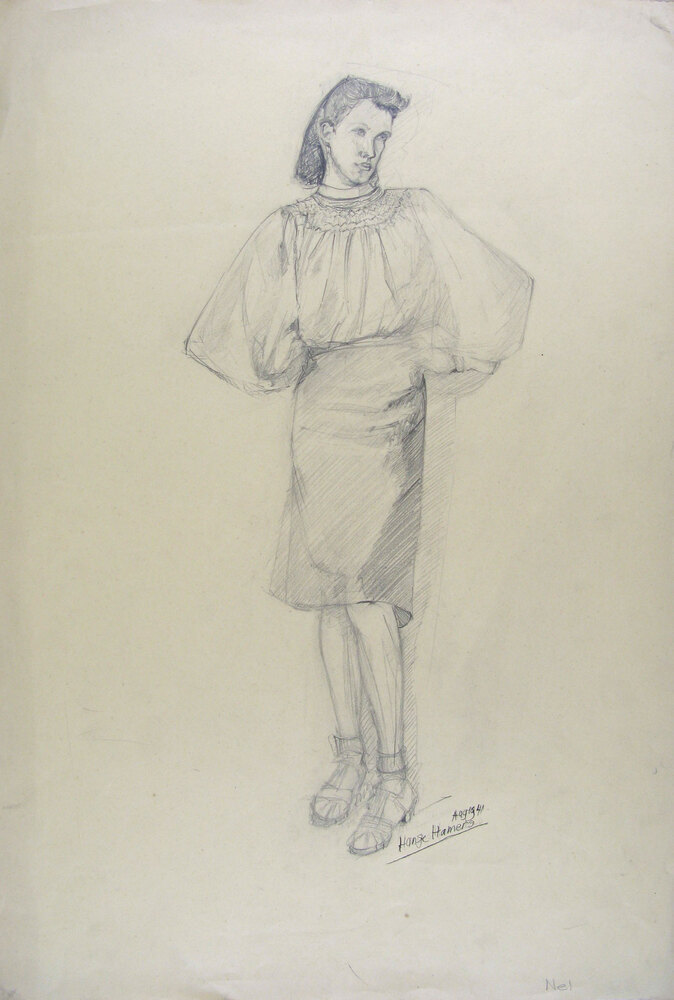 Modetekening gemaakt aan Industrieschool voor vrouwelijke Jeugd De Schans- Trefwoorden