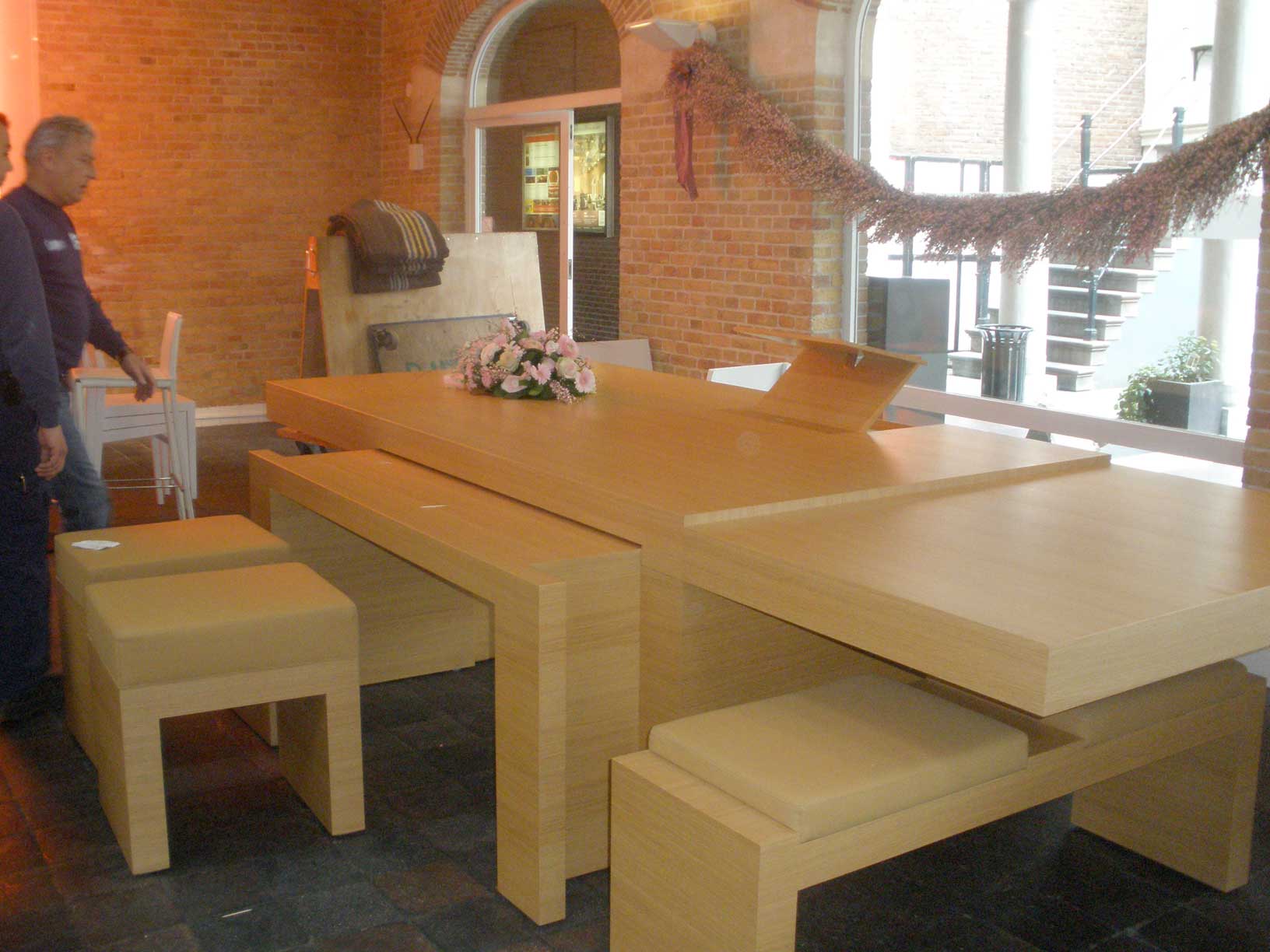 Huwelijksmeubilair: ceremonietafel, (klapbare) lezenaar, twee taboeretten en getuigenbankje