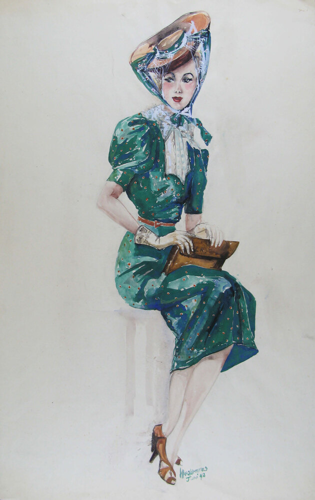 Modetekening gemaakt aan Industrieschool voor vrouwelijke Jeugd De Schans- Trefwoorden