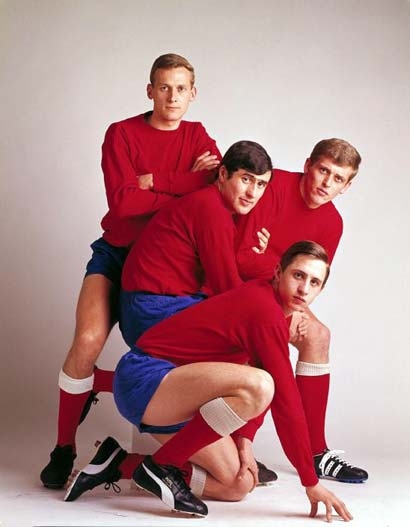 Johan Cruijff, Sjaak Swart, Piet Keizer en Klaas Nuninga kijken uitdagend in de lens: de voorhoede van voetbalclub Ajax, veelbelovende jonge mannen aan de vooravond van het grote succes. De foto siert de cover van Elseviers Weekblad in 1967 en inspireert tot op de dag van vandaag vele (amateur)fotografen. In 1967 staat Cruijff aan het begin van zijn carrière; Paul Huf is dan een gerenommeerd fotograaf, gespecialiseerd in groepsportretten. ( Anneke van de Kieft)