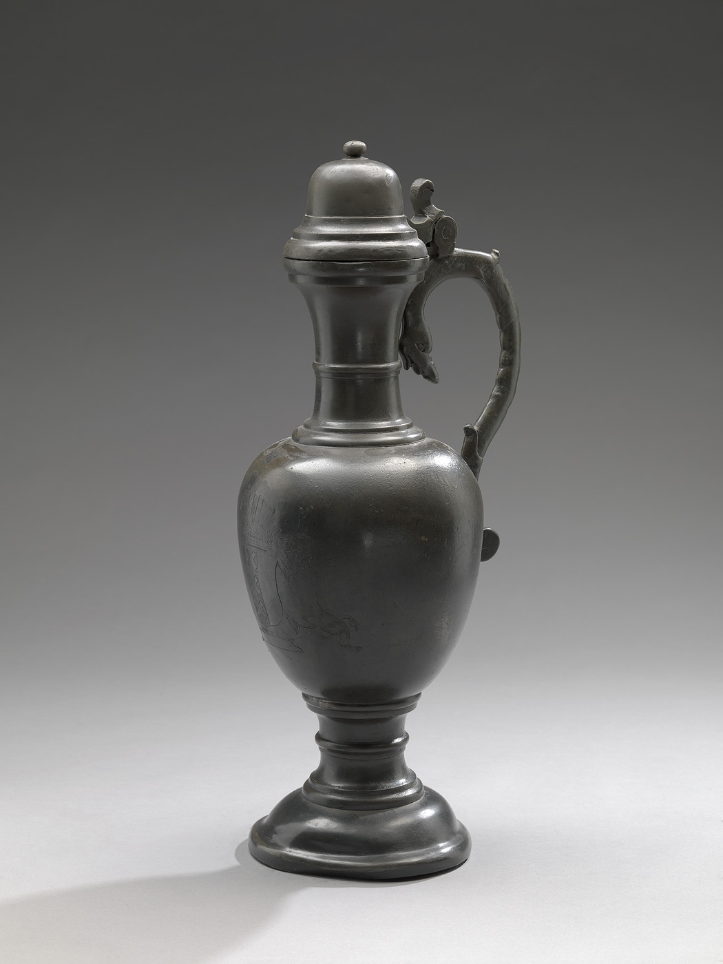 - merk op het oor: B.H.: gekroonde roos, de letters B.H. in de kroon : tinnegieter Barend Harmensz. Haan