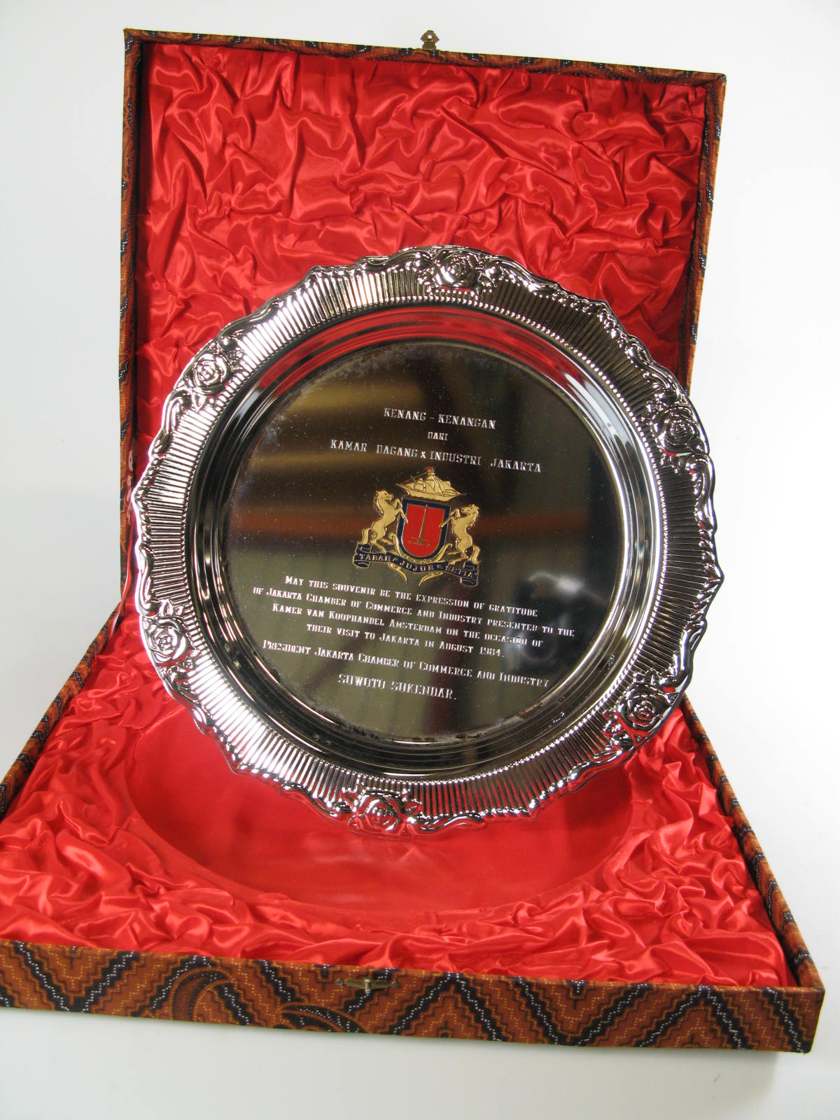 - Schaal geschonken door president Kamer Van Koophandel Jakarta, 1984