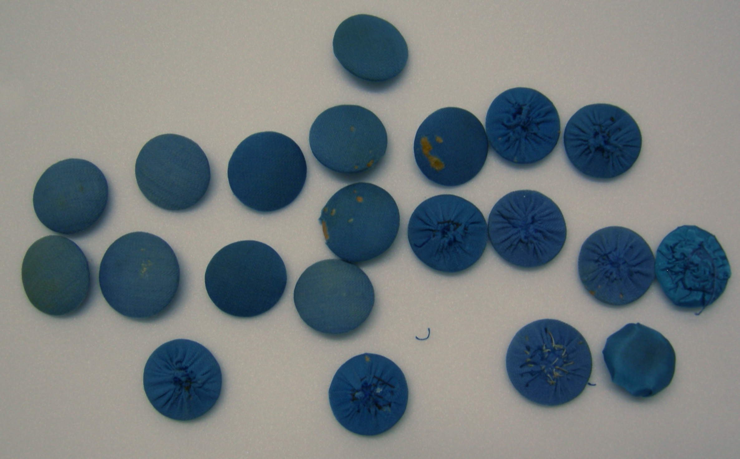 Losse knopen van blauwe zijde, 21 stuks.