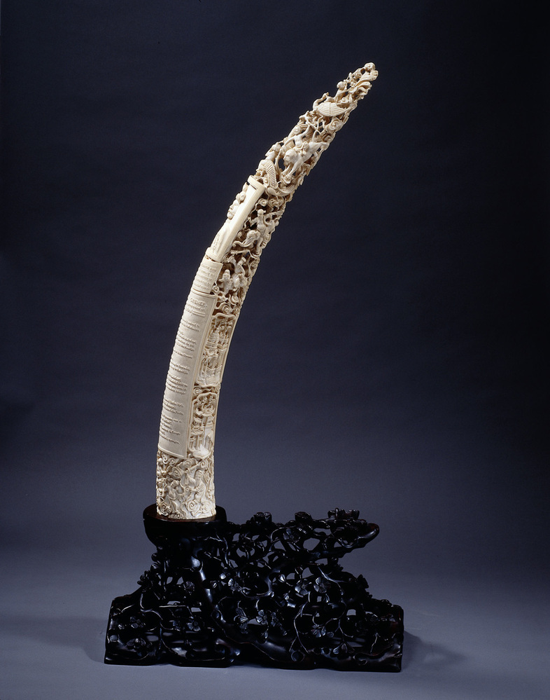 en bijzonder relatiegeschenk. Deze olifantstanden waren een cadeautje van Tjong A Fie, Chinese magnaat op Sumatra. De gelukkige ontvangers zijn geportretteerd in het ivoor: Jacob Cremer (1847-1923) en zijn vrouw Annie Hogan. Cremer verdiende, dankzij de inzet van Chinese koelies, een fortuin met zijn tabaksplantage op Sumatra, was minister van Koloniën en daarna president van de Nederlandsche Handel-Maatschappij. Op de tand is hij afgebeeld in ministerskostuum. ( Laura van Hasselt)