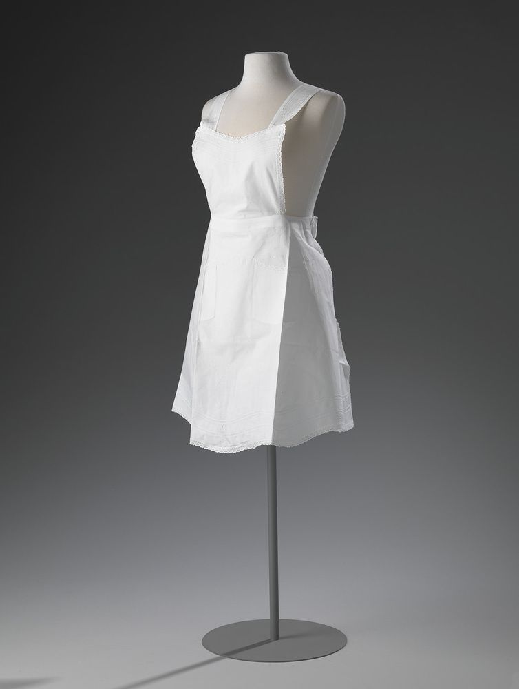 label binnenkant onderkant rechterschouderlint: A.W.R. schort - schenking 2011