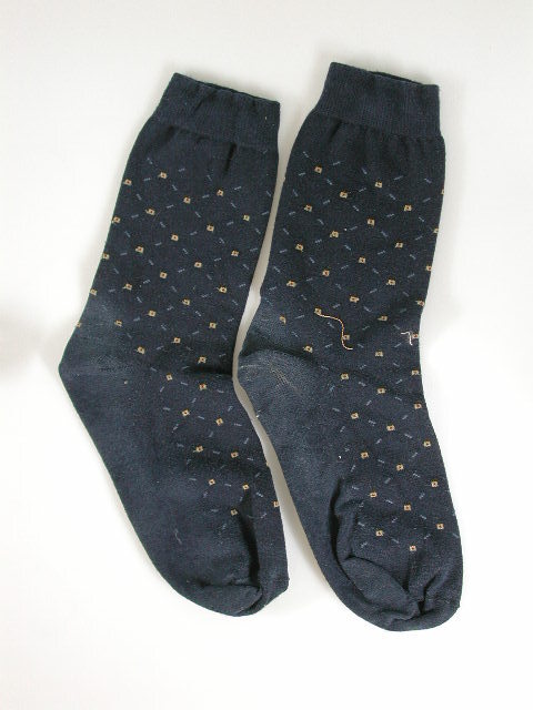 Donkerblauwe korte sok met ingeweven werkje in beige.- Trefwoorden