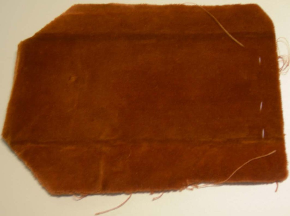 Trijp, roestbruin. Afkomstig van de bovenzijde van de toneelopening.- Trefwoorden