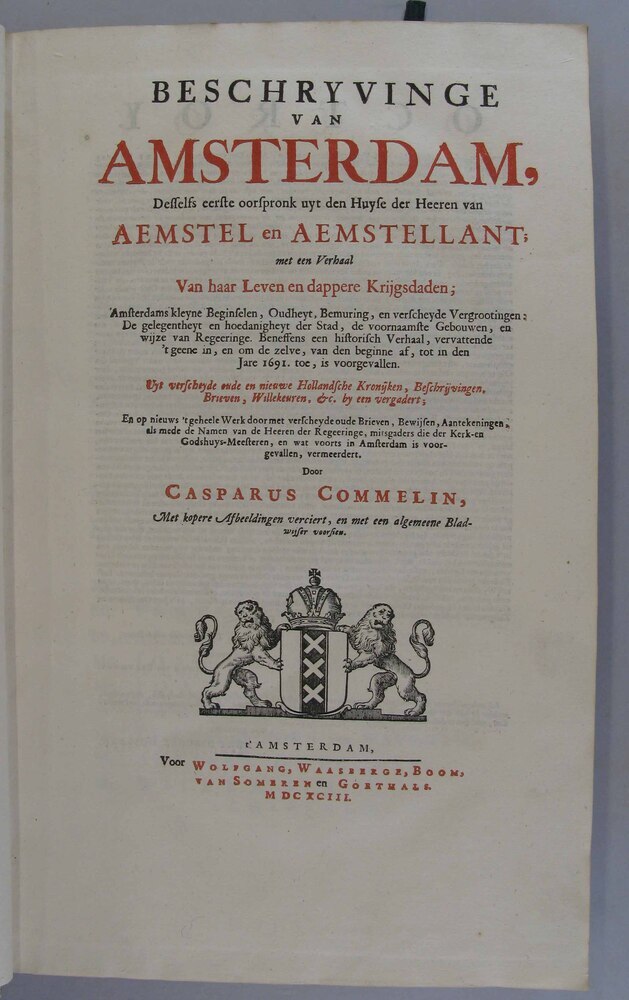 Beschryvinge Van Amsterdam, Desselfs eerste oorspronk uyt den Huyse der Heeren van Aemstel en Aemstellant; met een Verhaal Van haar Leven en dappere Krijgsdaden; Amsterdams kleyne Beginselen, Oudheyt, Bemuring, en verscheyde Vergrootingen: De gelegentheyt en hoedanigheyt der Stad, de voornaamste Gebouwen, en wijze van Regeeringe. Beneffens een historisch Verhaal, vervattende 't geene in, en om de zelve, van den beginne af, tot in den Jare 1691. toe, is voorgevallen. Uyt verscheyde oude en nieuwe Hollandsche Kronijken, Beschrijvingen, Brieven, Willekeuren,
