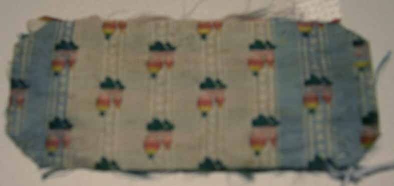 Lila staal met ingeweven patroon, met bloemetjes in groen, geel, rood en roze- Trefwoorden