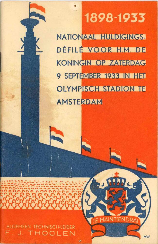- Tekstboekje Nationaal Huldigingsdefilé voor H.M. de Koningin op zaterdag 9 september 1933 in het Olympisch Stadion te Amsterdam, 1933
