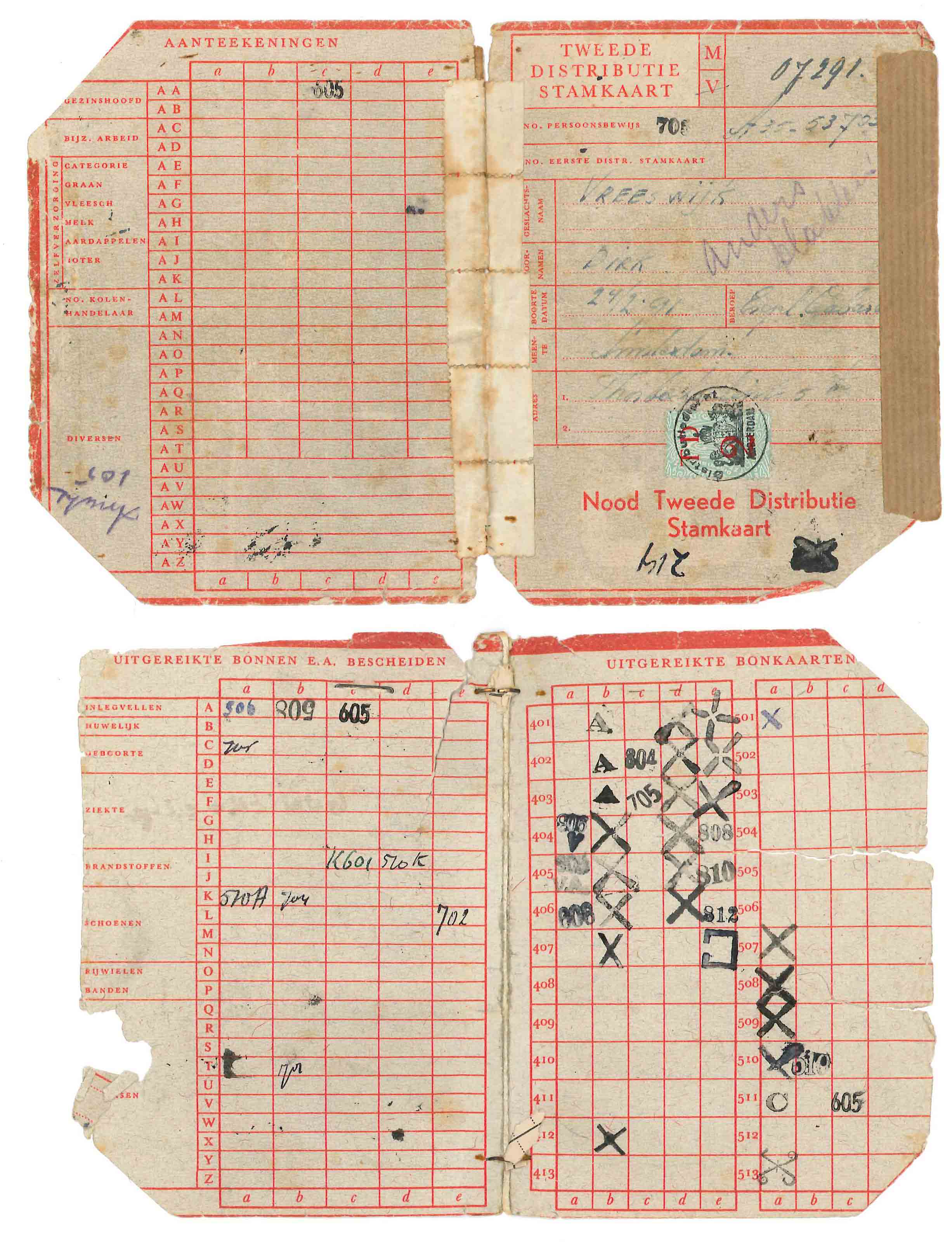 - Tweede distributiestamkaart van Dirk Vreeswijk, exploitant van Club Alcazar, 1940 - 1945