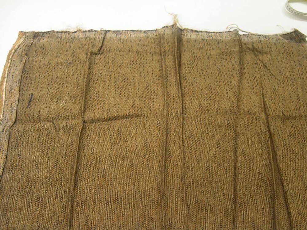 Stuk beige wandbekleding met goudbruin patroon. Wandbekleding boven.- Trefwoorden