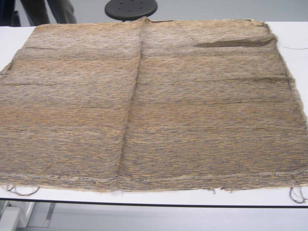 Stuk beige wandbekleding met goudbruin patroon. Wandbekleding links.- Trefwoorden