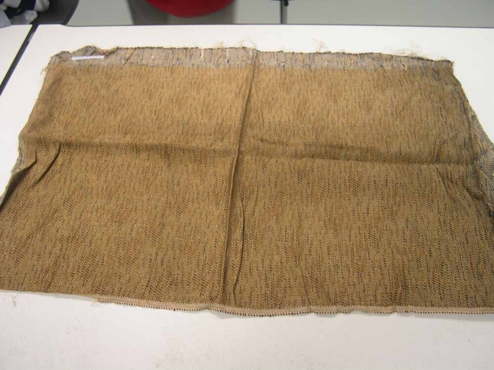 Stuk beige wandbekleding met goudbruin patroon. Wandbekleding boven.- Trefwoorden