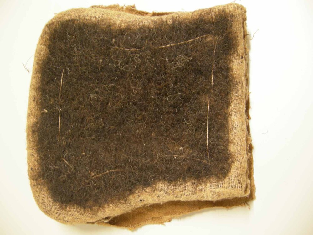 Vulling voor de rugleuning van de stoel, bestaande uit jute en haar.- Trefwoorden