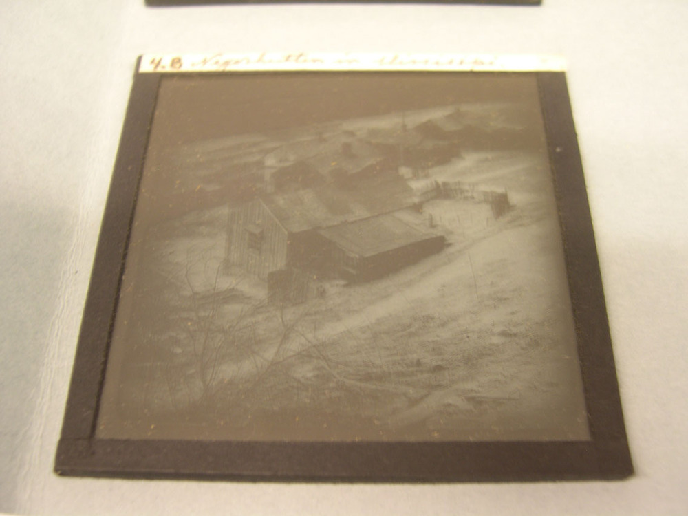 Toverlantaarnplaatje uit de serie 'Reis door Noord-Amerika'. No 4 Negerhutten in Missisipi