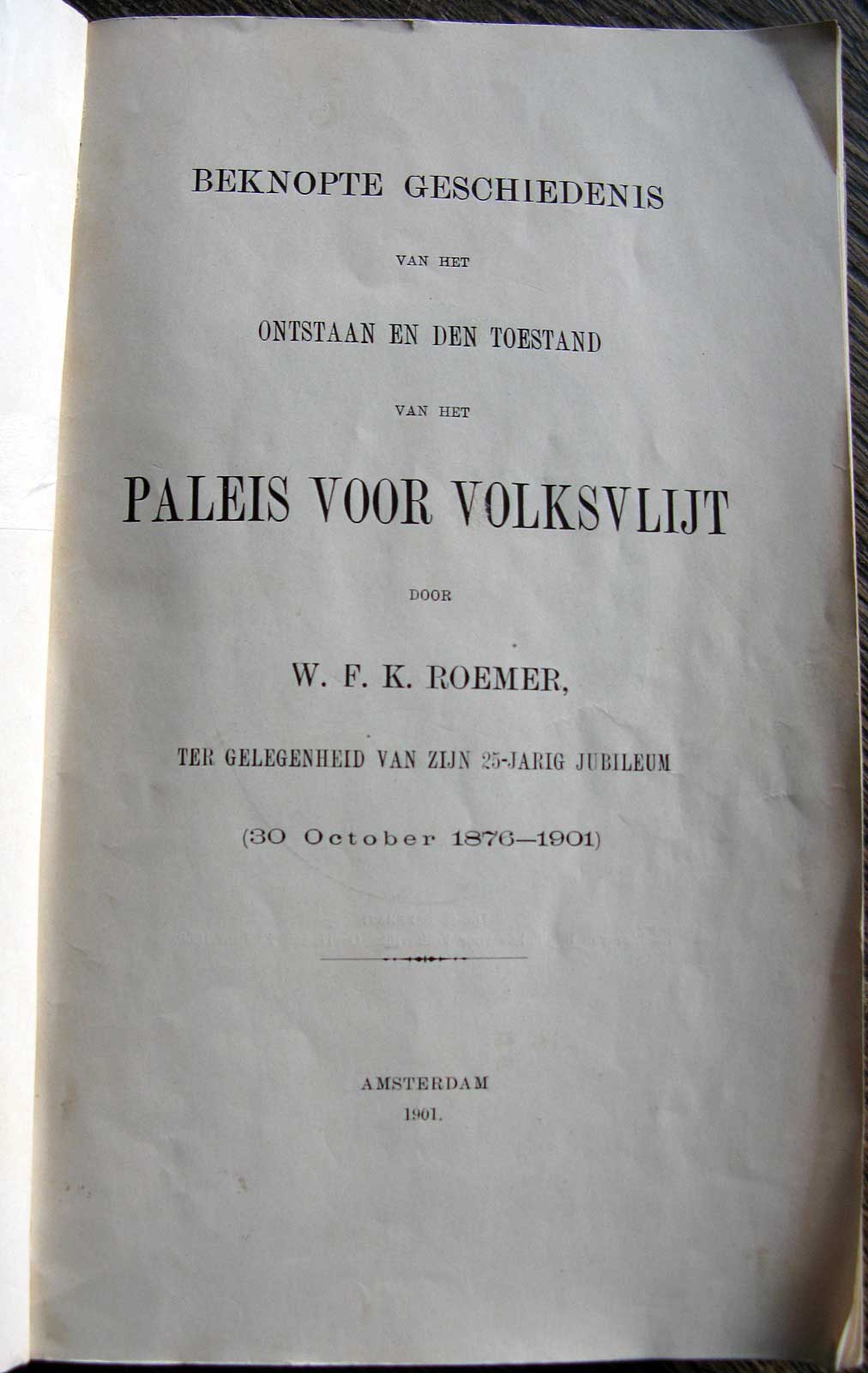 - Beknopte geschiedenis van het ontstaan en den toestand van het Paleis voor Volksvlijt (incl. ingevoegde brief van Roemer aan kleinzoon Federik Christiaan Verhaaff en drie foto-ansichten), 1901