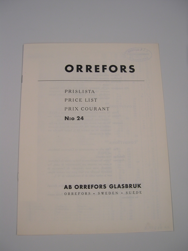 - Prijslijst bij catalogus 'Orrefors 24', 1900 - 1950