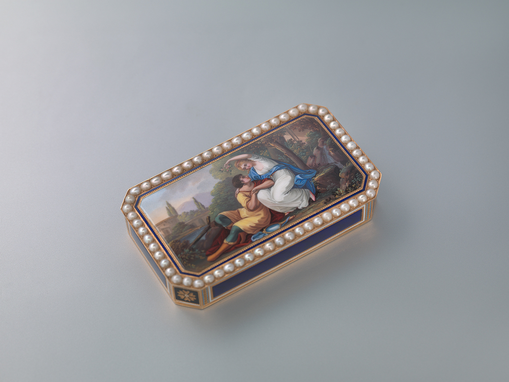 - Achthoekige snuifdoos met een emaildecor van ‘Rinaldo en Armida’ naar Angelica Kauffmann, 1780 - 1800