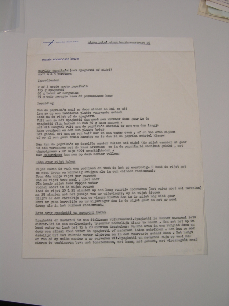 Recept op briefpapier Toussie Salomonson-Keezer- Trefwoorden