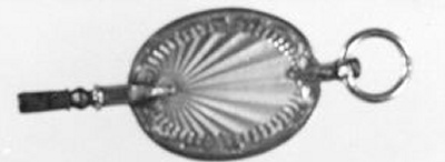 Bewerkte gouden horlogesleutel, ovaal met ring.- Trefwoorden