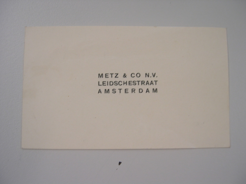 Visitekaartje Metz en Co. Cremekleurig kaartje met zwarte opdruk- Trefwoorden