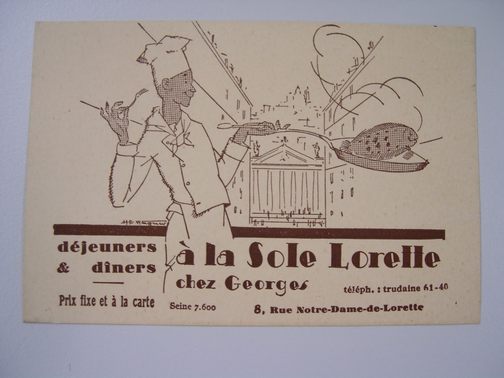 Visitekaartje à la Sole Lorette. Cremekleurig kaartje met bruine opdruk- Trefwoorden