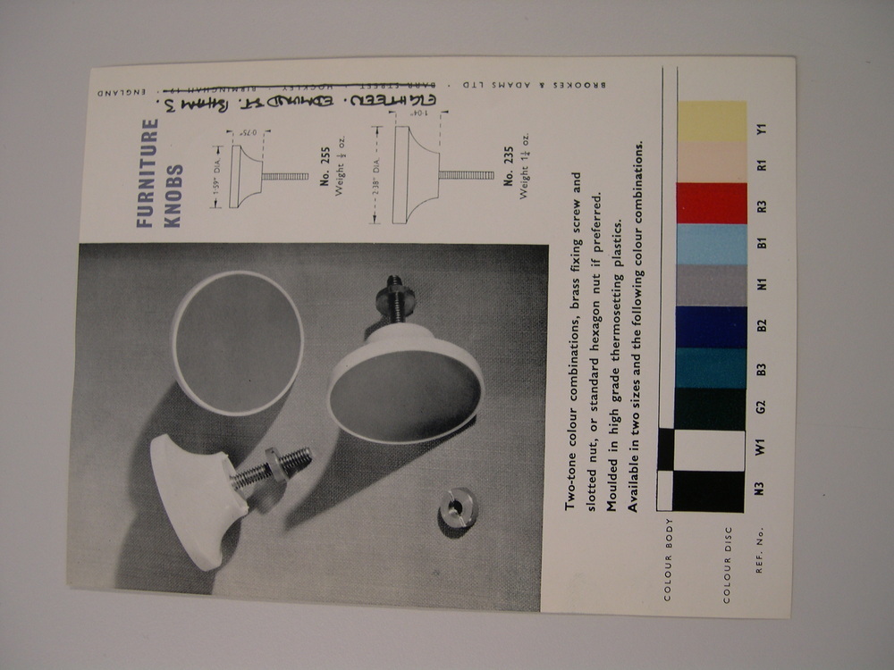 Folder voor deurknoppen Brookes & Adams LTD. Kleurendruk.- Trefwoorden