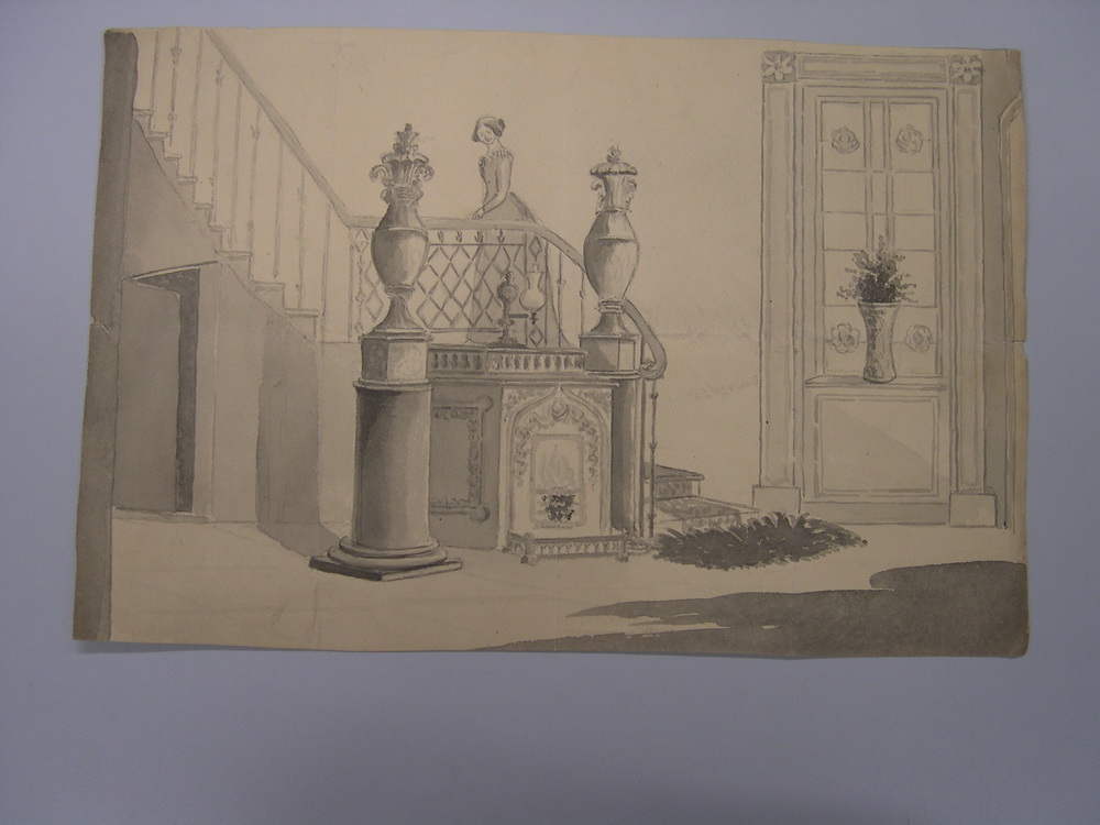 stempel achterzijde tekening: Backer Stichting F12 - bruikleen 1954-07-29