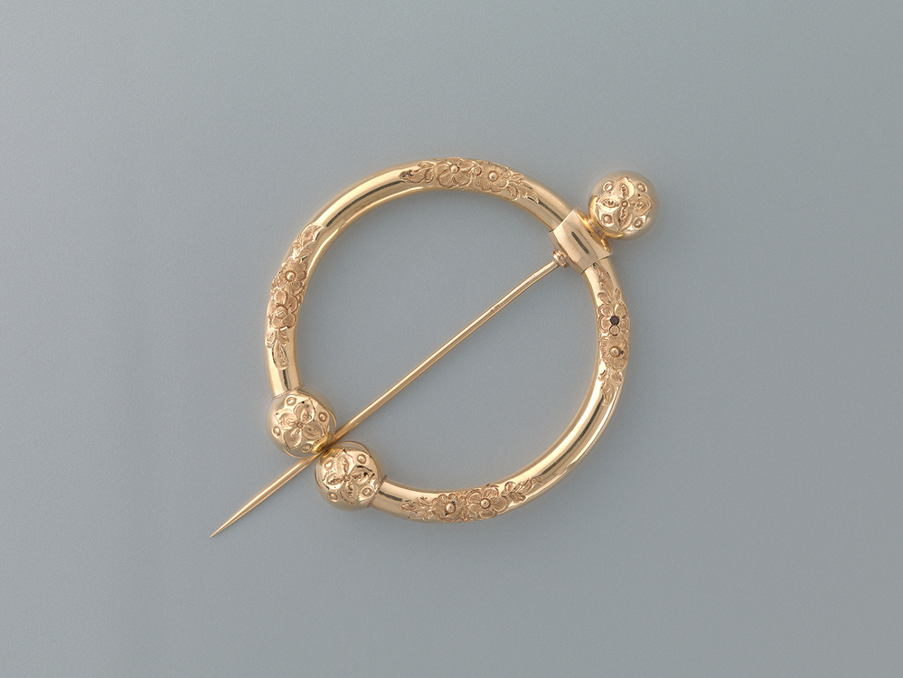 - Verschuifbare speld versierd met een bloemendecor, 1850 - 1870