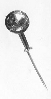 Speld met een zeer plat roos geslepen diamant, de vatting is van witgoud, met gouden speld en sluitspeld.- Trefwoorden