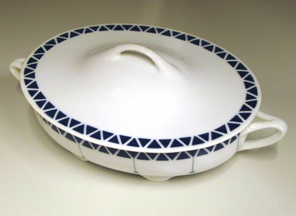 Dit serviesonderdeel komt uit het bezit van de Amsterdamse architect Abraham Salm (1857-1915). Samen met zijn vader Gerlof Bartholomeus Salm (1831-1897) heeft Abraham een grote bijdrage geleverd aan de stedenbouwkundige veranderingen in Amsterdam in de tweede helft van de negentiende eeuw. Waar G.B. Salms naam onlosmakelijk verbonden is met de bouw van Artis in de Plantage, staat zoon Abraham vooral bekend om zijn herenhuizen, stadsvilla’s, (sigaren)fabrieken en paardentramremises, aanvankelijk in classicistische, later in meer historiserende eclectische stijl. Daarnaast ontwierp hij ook interieuronderdelen. Dit 28-delige servies is afkomstig uit het door A. Salm ontworpen huis aan de Weesperzijde 26, waar hij zelf woonde en werkte. Salm heeft het servies aan het begin van de 20ste eeuw gekocht op de Wereldtentoonstelling in Duitsland. ( Sarah Remmerts de Vries)