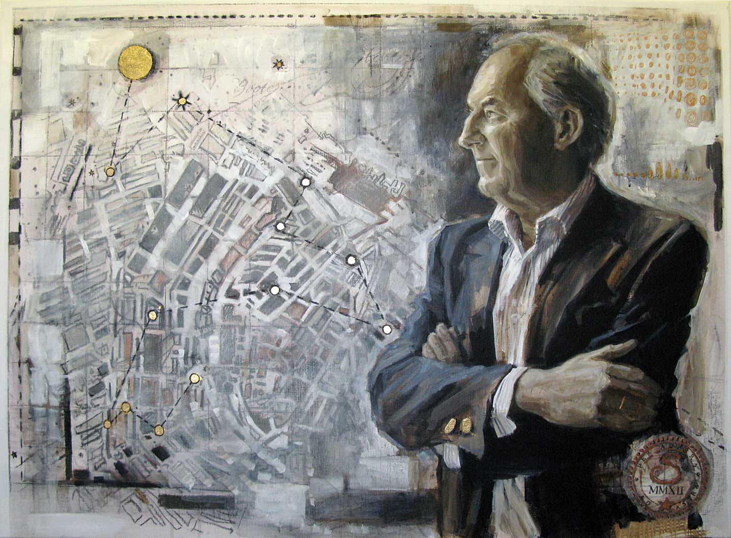 Jurist en politicus Job Cohen was van 2001 tot 2010 burgemeester van Amsterdam. Een turbulente tijd voor de stad, niet in de laatste plaats door de moord op filmmaker Theo van Gogh in 2004 en de daarop volgende discussie over de multiculturele samenleving. Cohen heeft met zijn optreden destijds zoveel lof geoogst, dat hij er de bijnaam ‘Burgemeester van Nederland’ aan heeft overgehouden. In 2012 is Cohen tijdens het tv-programma ‘Sterren op het doek’ door drie verschillende kunstenaars geportretteerd. Het winnende portret, vervaardigd door Sylvia van Opstall, is op 30 oktober 2012 in het stadhuis onthuld. ( Sarah Remmerts de Vries)