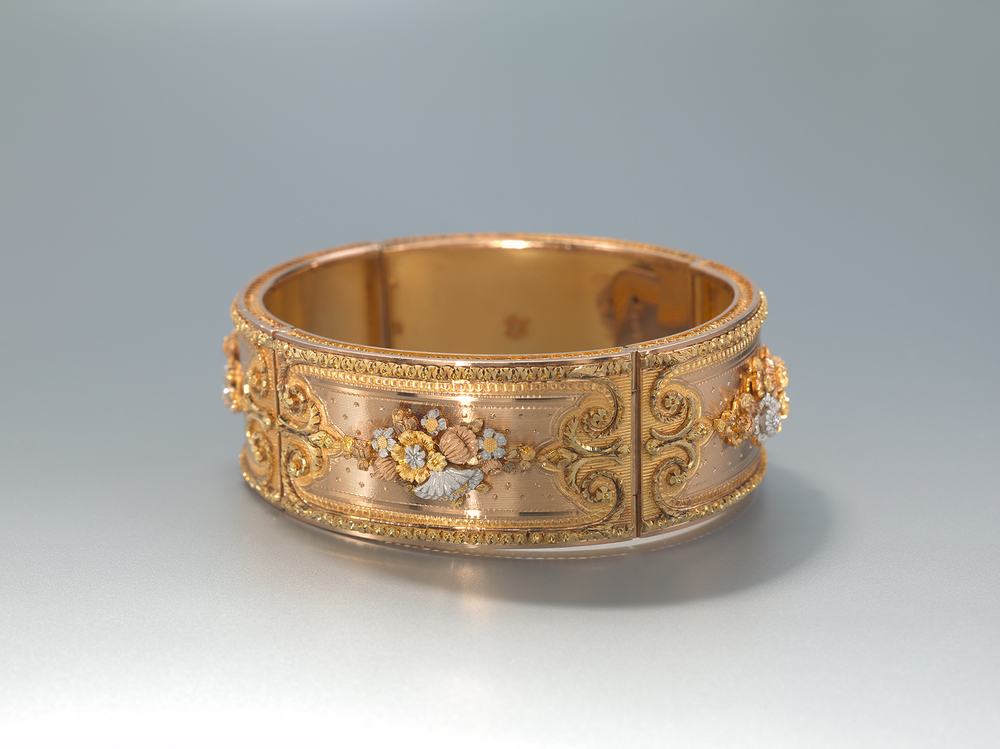 - Armband versierd met geappliqueerde bloemboeketten, 1870 - 1890