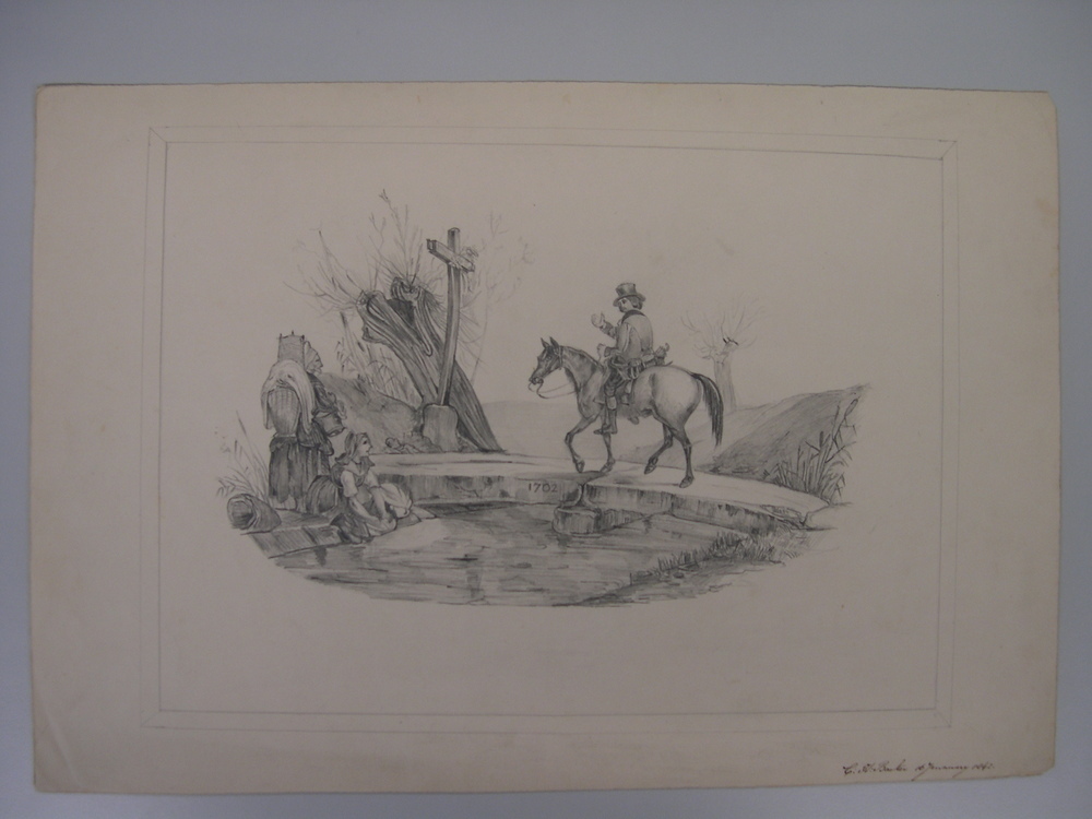 - Twee wassende vrouwen en man op paard, 1812 - 1850
